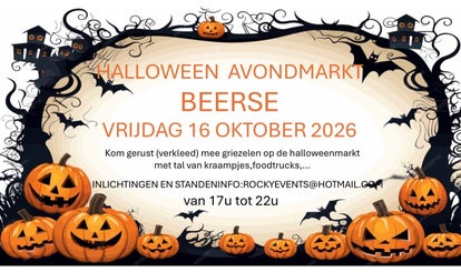 Wenst u graag deel te nemen aan de halloweenavondmarkt in Beerse schrijf u dan nu in via rockyevents@hotmail.com of rechtstreeks via de website